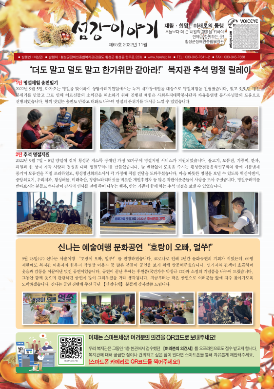 섬강이야기 65호 페이지 정보 작성자횡성군장애인종합복지관 작성일2025-11-10 첨부파일 섬강이야기65호웹.pdf (15.0M) 본문 섬강이야기 65호 이전글섬강이야기 66호 2025-11-10 다음글섬강이야기 64호 2025-11-10 목록 답변