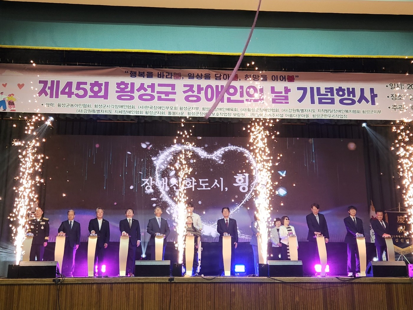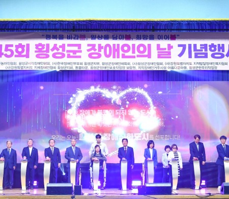 지난 4월 24일(목), 횡성실내체육관 및 인라인스케이트장 일원에서 제45회 횡성군 장애인의 날 기념행사 및 장애친화도시 선포식을 성황리에 개최했습니다.