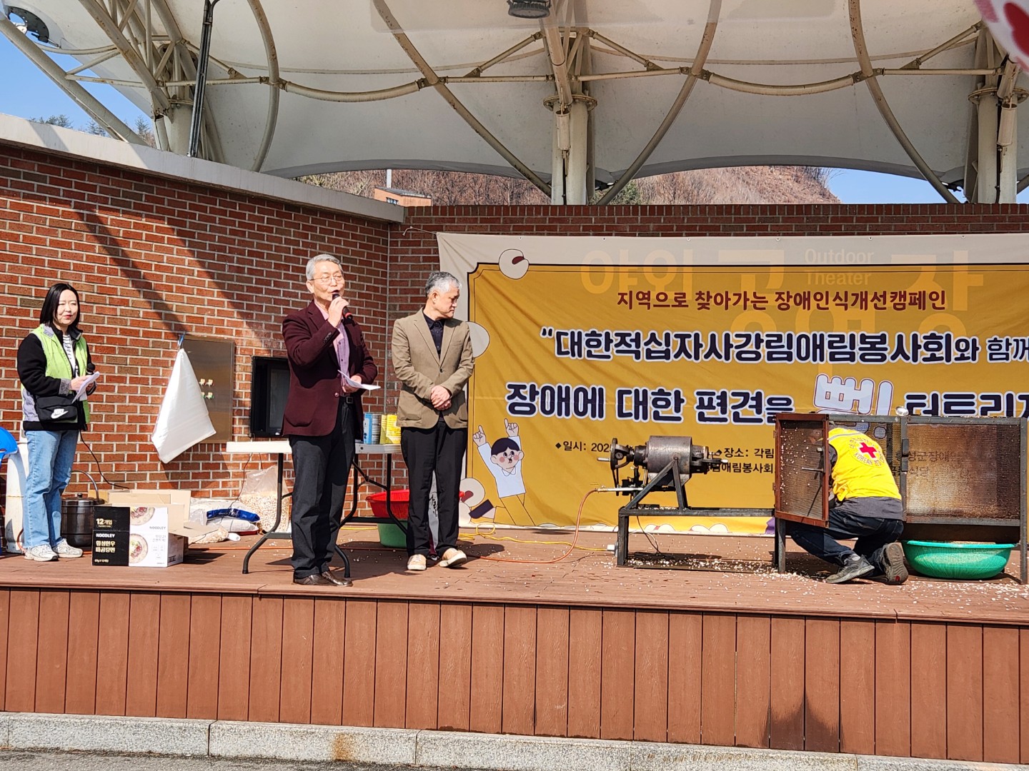횡성군장애인종합복지관 지역사회개발팀은 지난 4월 3일, 강림면 각림건강복지센터에서 ‘장애에 대한 편견을 뻥! 하고 날려버리자’를 주제로 장애인식개선 캠페인을 진행했습니다. 강림면 주민과 장애인 총 49명이 함께 참여하였으며, 퍼포먼스, 장애이해 OX퀴즈, 뻥튀기 판매, 외식지원 등 다양한 프로그램이 펼쳐졌습니다.
