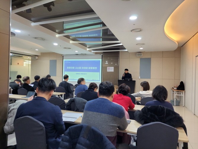 2025년 2월 14일 동대문에 위치한 스페이스쉐어 수피아1홀에서, 13:30분~16:30 3시간 동안 서울시장애인복지관협회 관장 연수에서 희망이음 시스템 이해와 활용방안에 대한 허만용 사무국장님의 강의가 있었습니다.