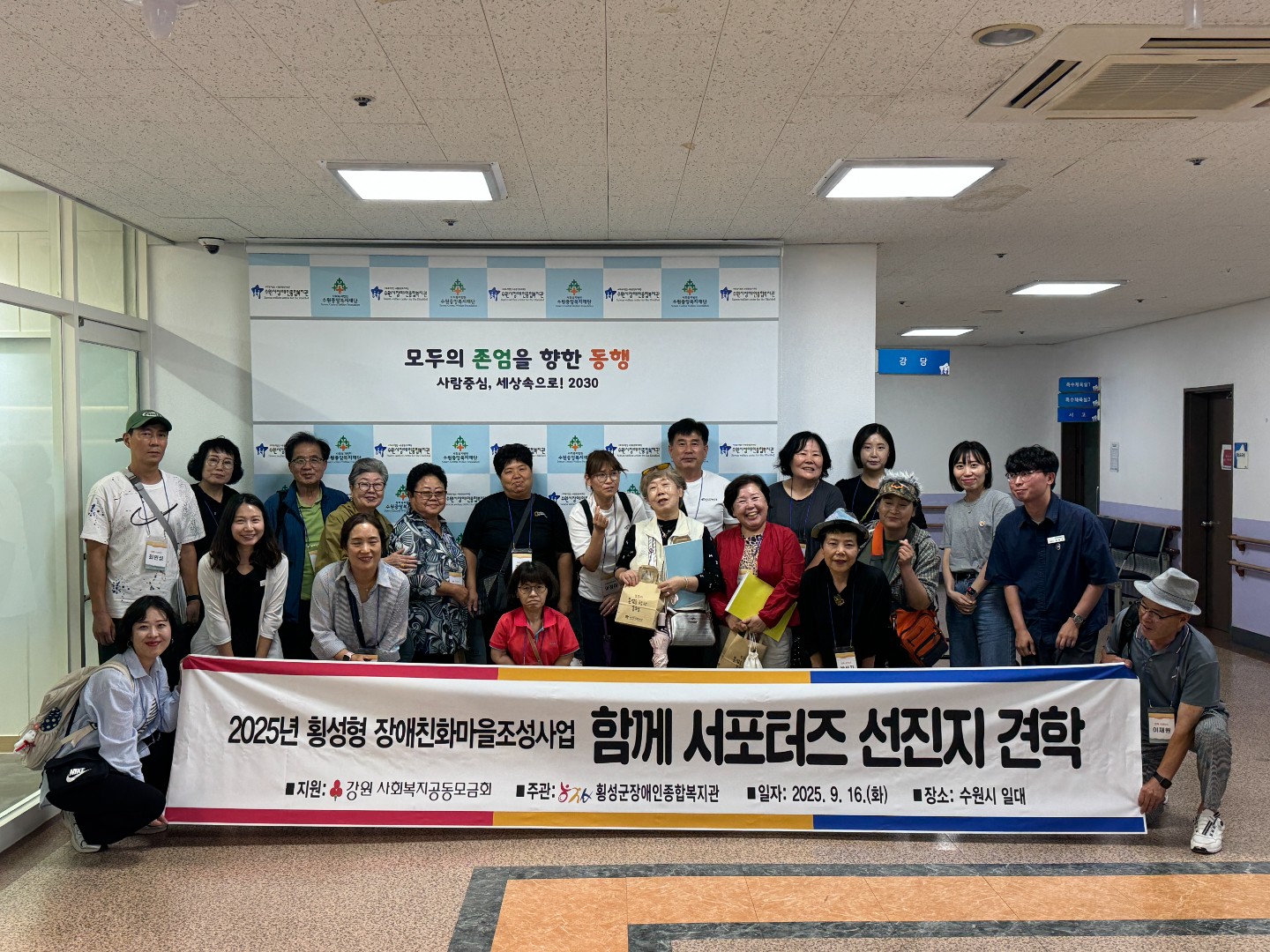 횡성군장애인종합복지관은 9월 16일(화), 함께 서포터즈 및 장애친화마을 WG 위원들과 함께 수원 지역 선진지 견학을 진행하였습니다.