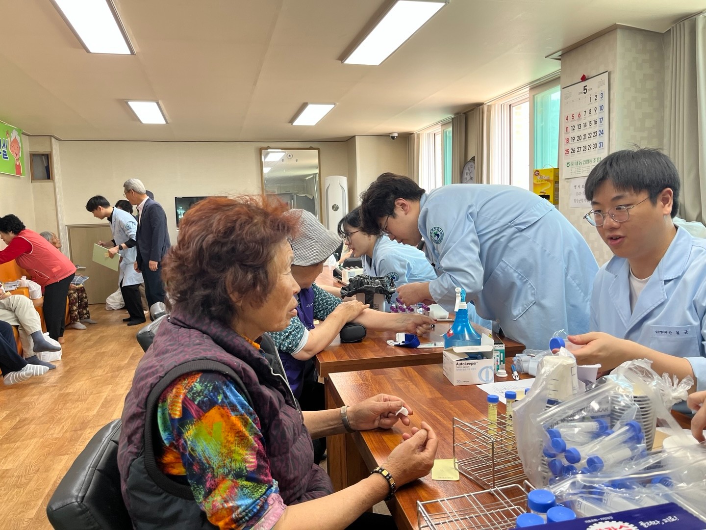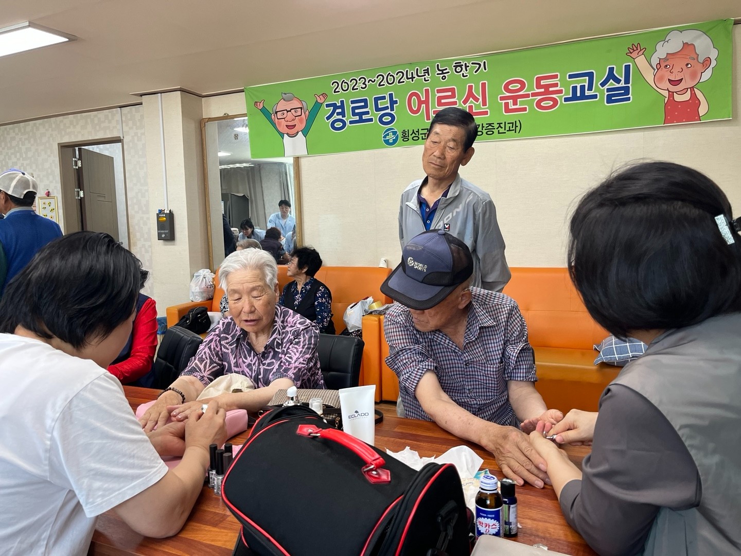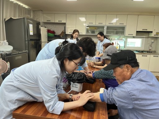 복지상담, 물품꾸러미 전달, 보장구 수리, 임상병리(채혈, 소변검사), 손마사지, 네일아트, 귀지제거 및 점검 실시로 마을 주민과 함께하는 시간을 가졌습니다.