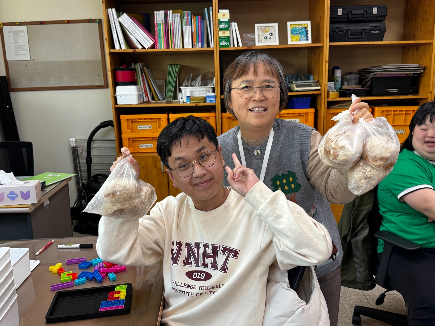 직접 만든 곡물빵을 후원해주셔서 복지관 내 이용자와 직업적응훈련실 이용자분들께 나누어 드렸습니다.