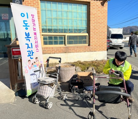 이번 이동복지관은 복지상담, 이미용 서비스, 보청기 점검, 재활운동, 보장구 수리 등