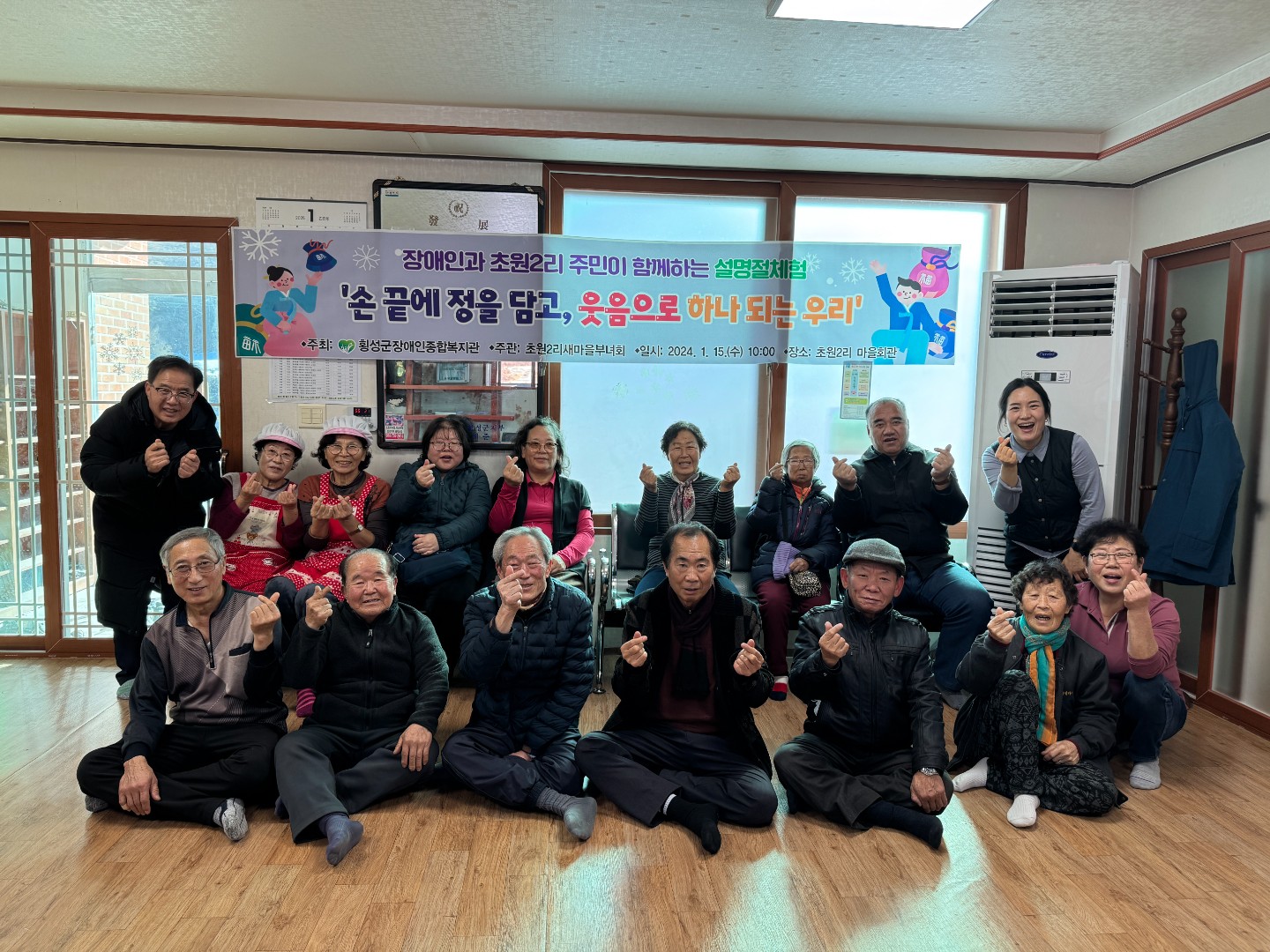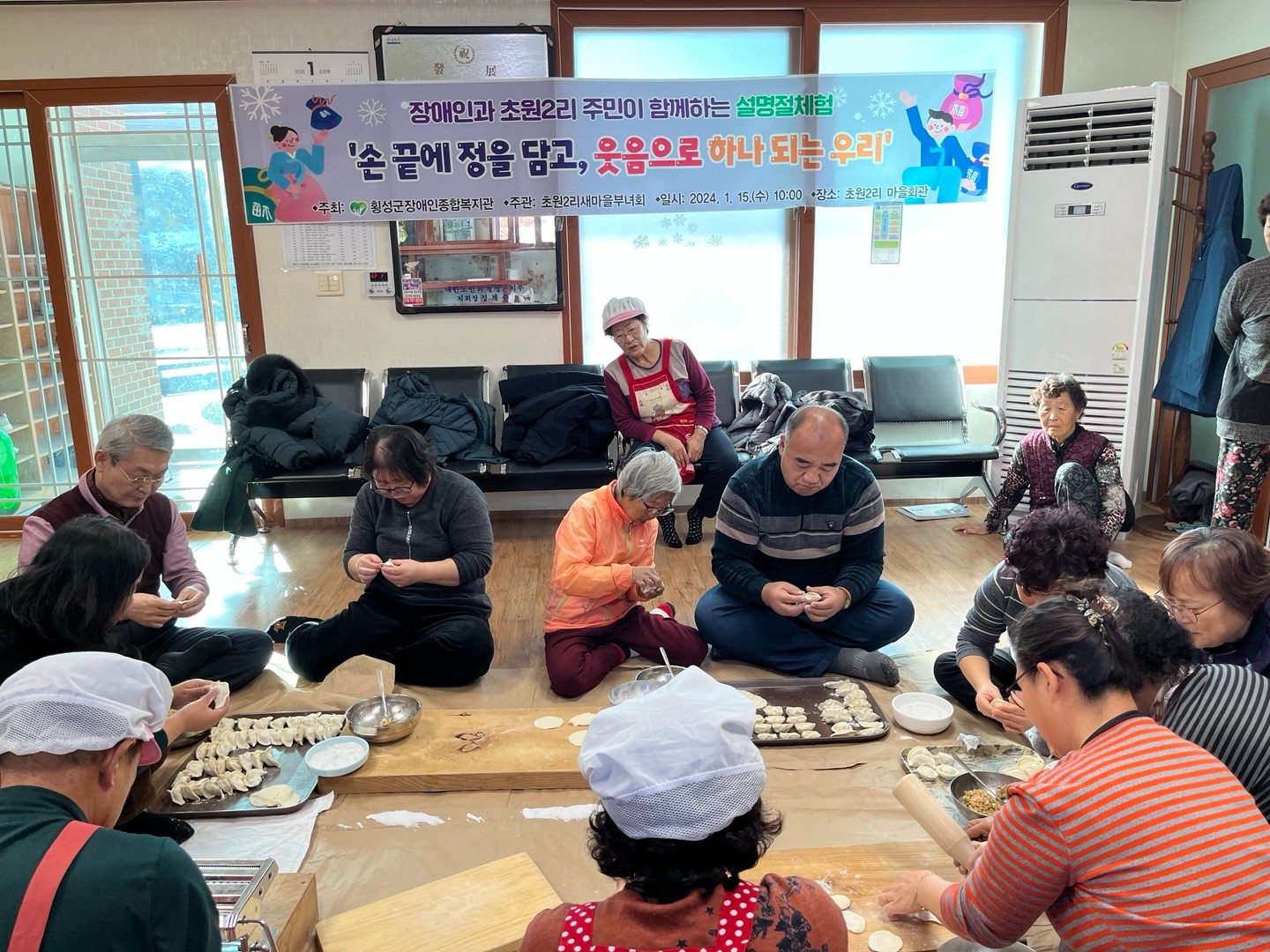 2025년 1월 15일(수), 공근면 초원2리 마을회관에서 장애인과 비장애인이 함께하는 설 명절 체험이 진행되었습니다. 지난해에 이어 두 번째 만남이었던 만큼, 참석자들은 먼저 안부를 묻고 정겹게 대화를 나누며 따뜻한 분위기를 만들었습니다.
