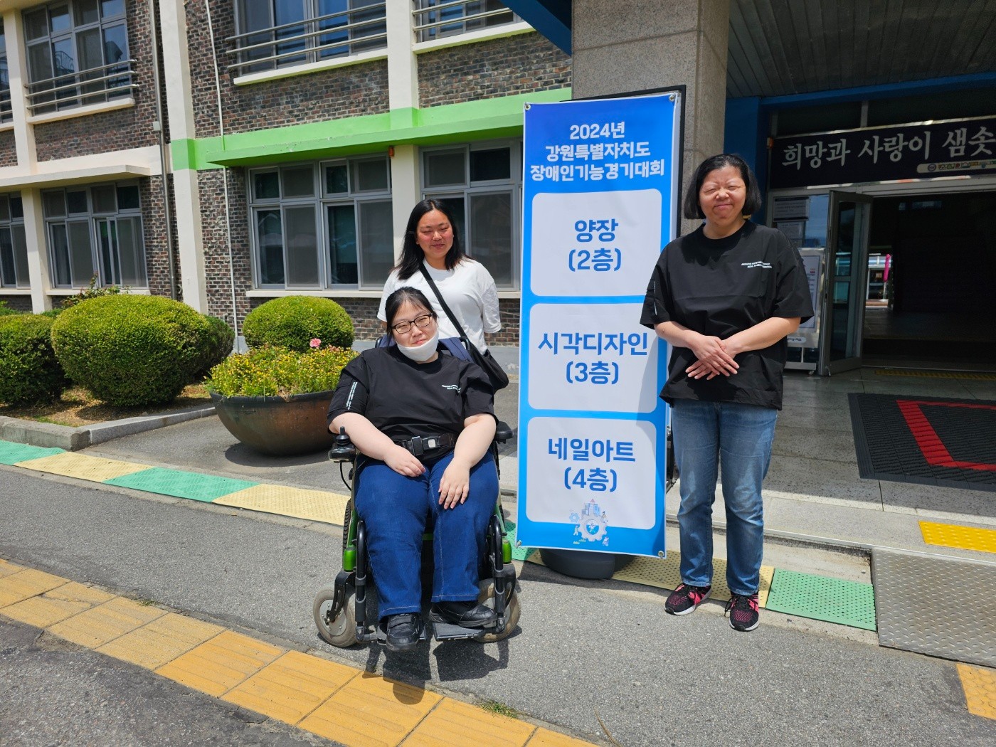2024년 6월 27일(목) 2024년도 강원특별자치도장애인기능경기대회가 춘천 일원에서 개최됨에 따라 본 복지관에서는 네일아트 프로그램 참여자 김은지, 변선형씨가 대회에 참가하였습니다.