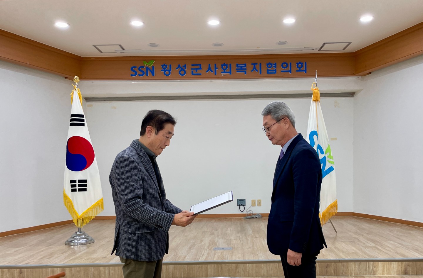 이날 표창장 수여는 보건복지부 관계자를 대신하여 복지관 운영법인 대표이사인 이석원 회장(횡성군사회복지협의회장)님이 복지관을 대표해 전달하였습니다.