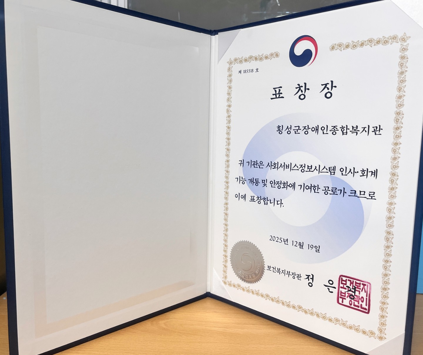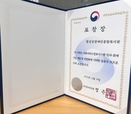 『횡성군장애인종합복지관, 2025년 사회서비스정보시스템 구축 및 운영부문 ‘보건복지부장관 표창’ 수상』