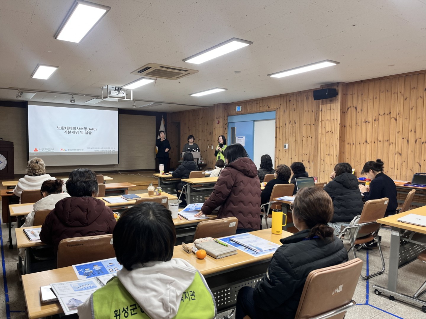 이번 교육은 보완대체 의사소통(AAC)의 이해를 주제로 사람과 소통 김지현 언어재활사를 초청하여 진행하였습니다. 또한 횡성군수어통역센터의 수어통역 지원으로 청각장애인을 포함한 모두가 함께 소통할 수 있는 교육 환경을 조성하였습니다.